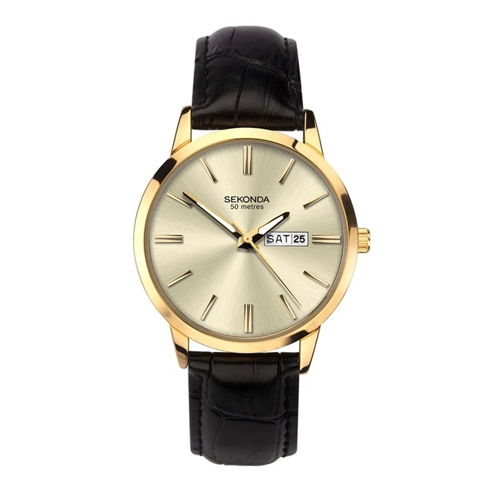 Sekonda 1838 Gold Tone Black Leather Strap Watch - W31202