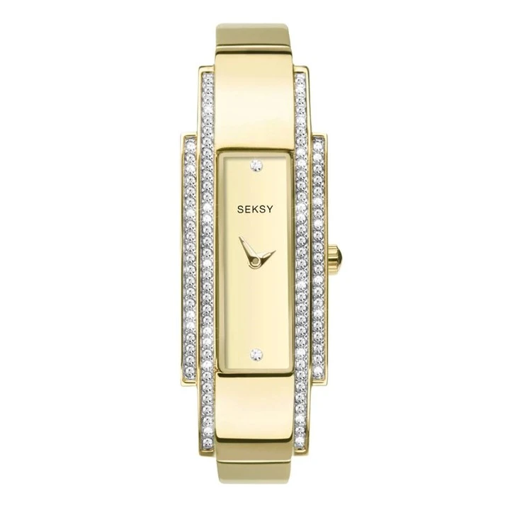 Sekonda Seksy 2737 - this stunning bracelet watch from Seksy will make a sparkling statement. The timepiece features a rectangular gold plated case that is embellished with two rows of glistening crystals. The champagne dial features sparkling crystal indexes at 12 and 6 o'clock. Finished with a half bangle bracelet with a folding clasp.