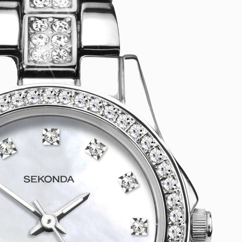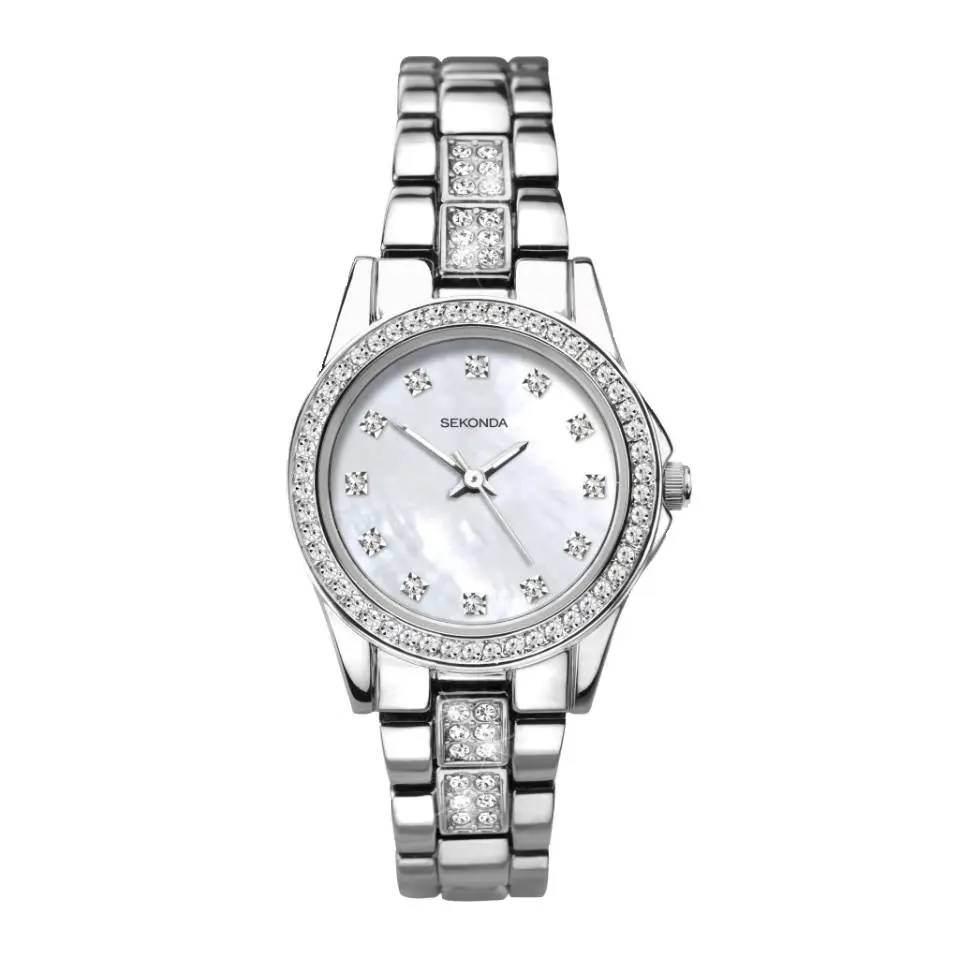 Sekonda 2841 Joanne - a pretty Sekonda watch that features a stone set case, a silver mother of pearl stone set dial and an adjustable bracelet. Stones continue onto the bracelet for a stylish finish.
