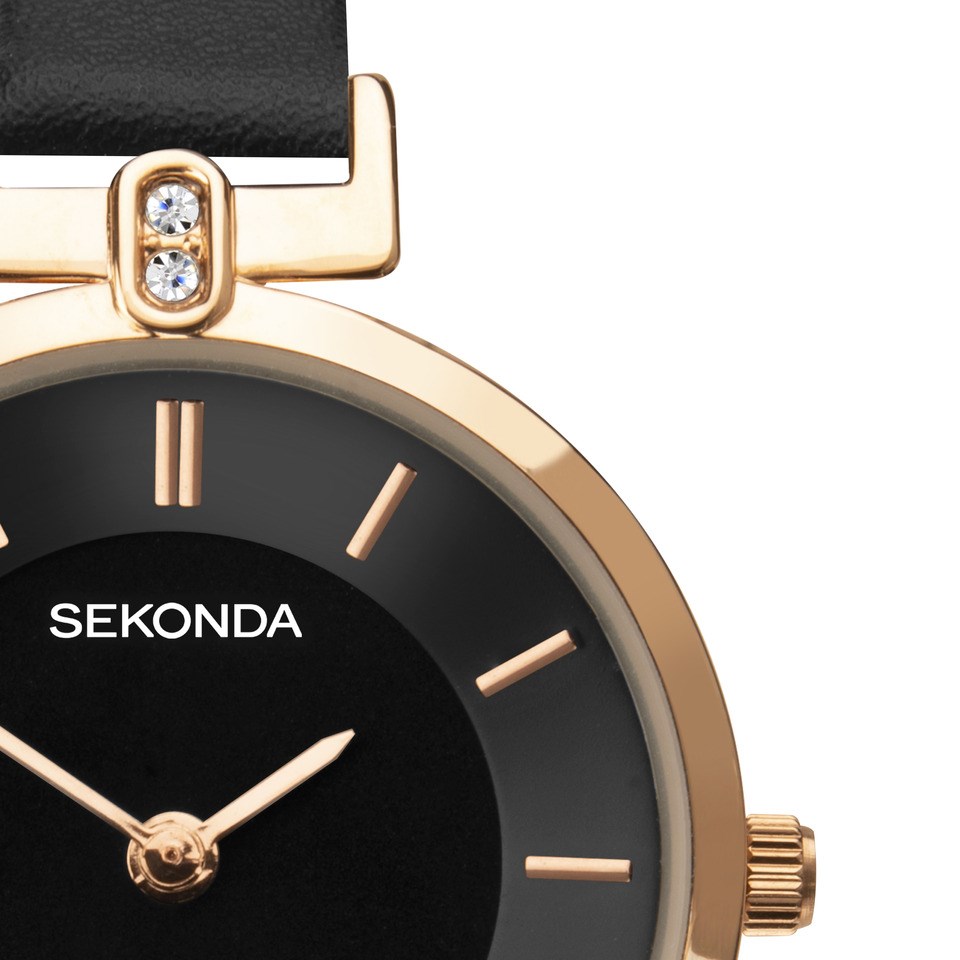 Sekonda 40297 Rose Tone Black Strap Watch - W32423