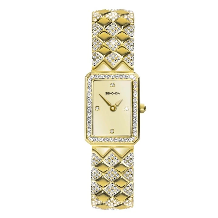 Sekonda 40513 Lunar - a stunning Sekonda watch featuring an elegant gold tone rectangular case, clear gold tone dial and gold tone hands. The crystal set hour markers are matched with the sparkling bezel and beautiful cross hatch design along the gold tone metal bracelet.