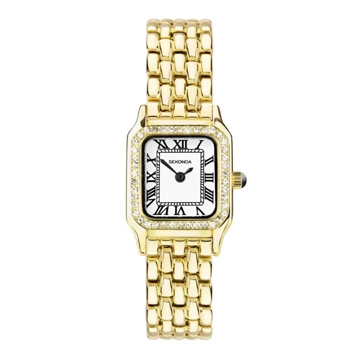 Sekonda 40642 Monica - with a stone set bezel, this ladies watch from Sekonda is a great value timepiece. The gold tone square case houses a white dial with black roman numeral hour markers and hands. Finished with a bracelet with an adjustable folding clasp.