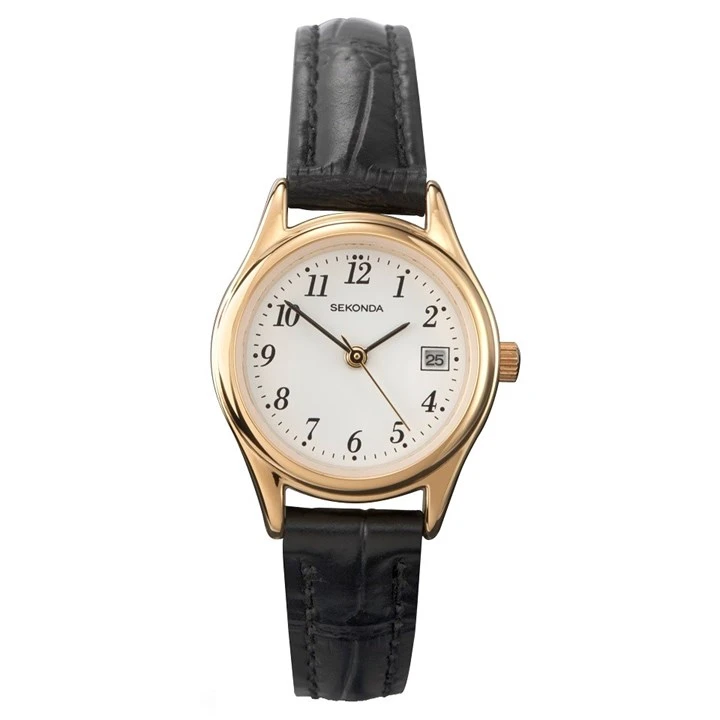 Sekonda 4082 Gold Plated Black Leather Strap Watch - W32223