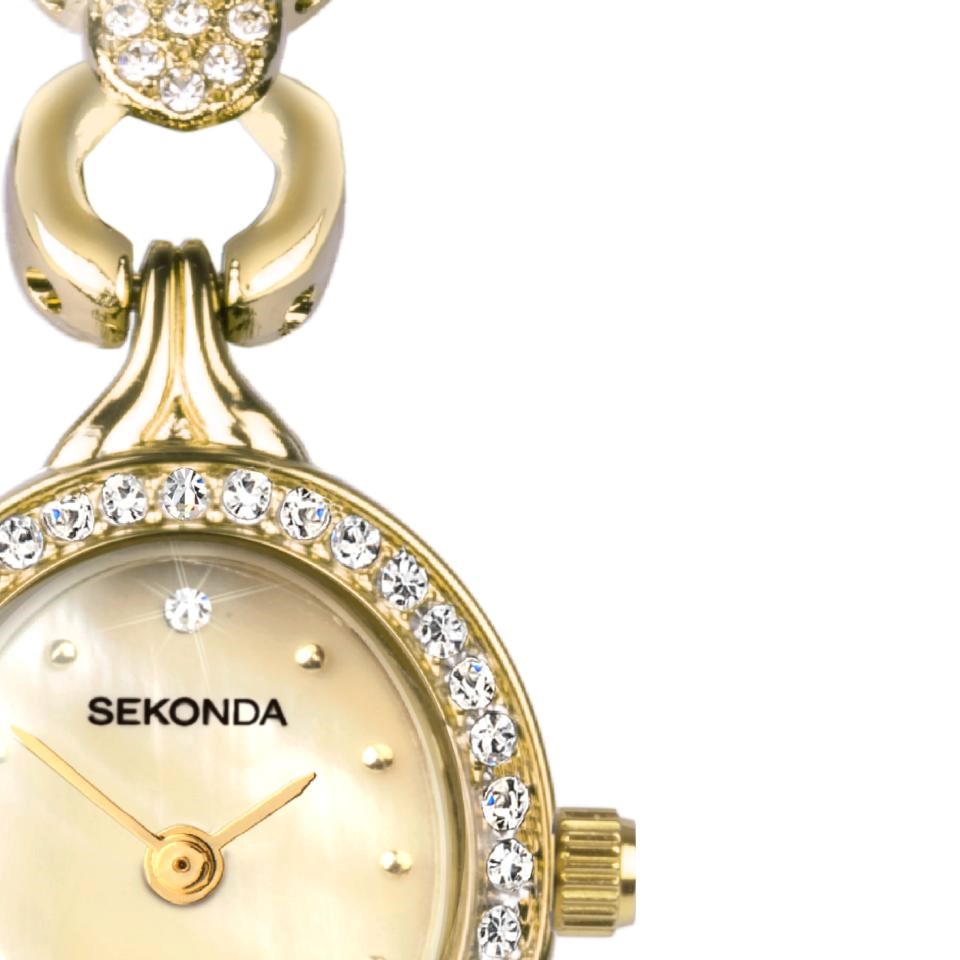 Sekonda 49020 Bracelet, Necklace, Earrings and Watch Gift Set - this stunning gold tone gift set features sparkle all the way. A crystal set bezel on the watch housing a champagne dial with crystal hour markers and bracelet. A pretty matching link bracelet with oval link pendant and earrings completes the set. A perfect gift option for any occasion.