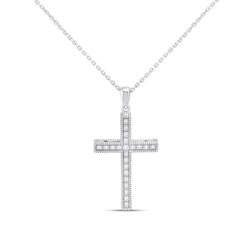 Silver 0.11ct Lab Grown Diamond Cross And Chain - F9817