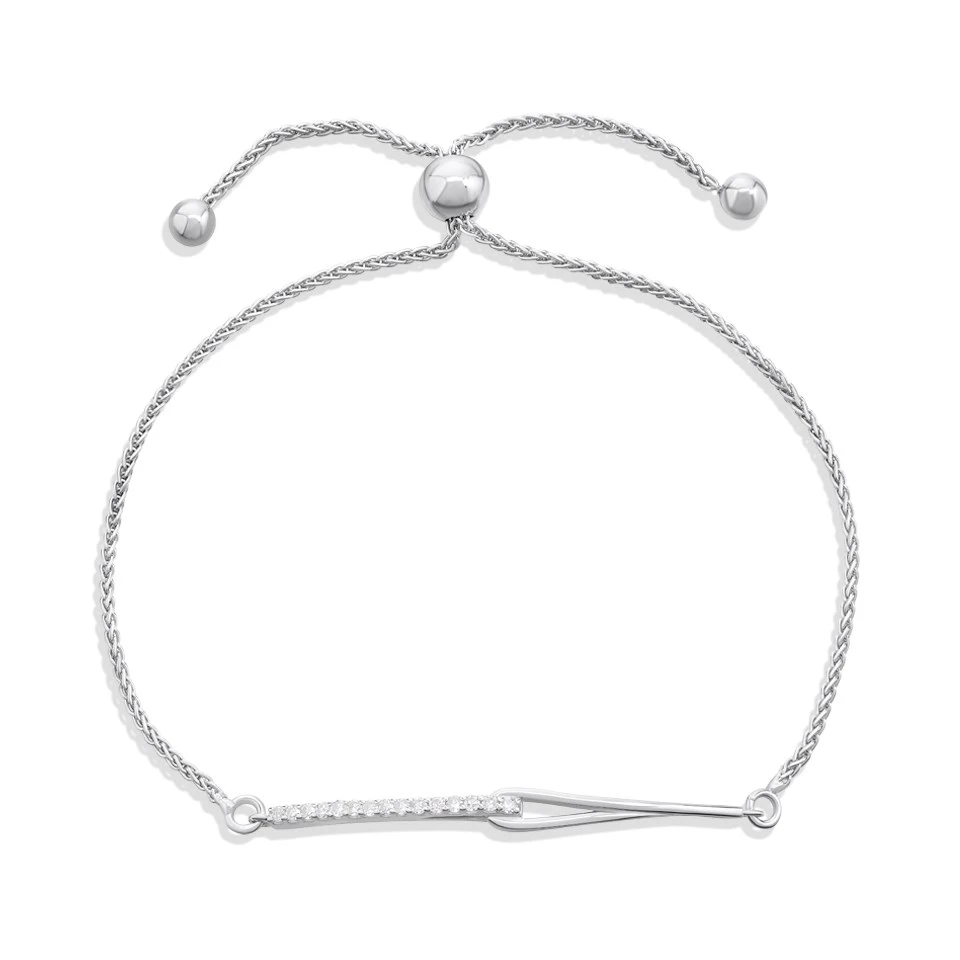 Featuring two interlocking thin links, this sterling silver bracelet symbolizes connection. One link is elegantly set with brilliant lab-grown diamonds and features a smooth, adjustable slide closure for a perfect fit.