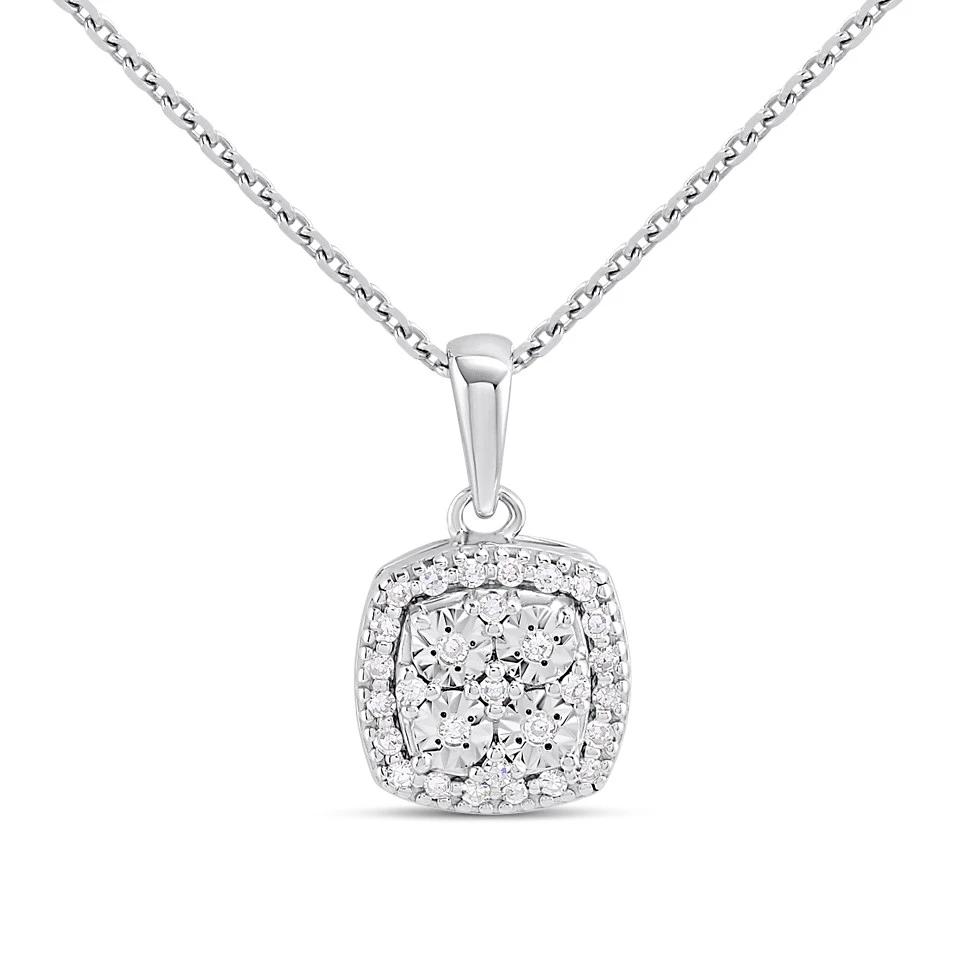 Silver 1/10ct Lab Grown Diamond Cushion Necklace - F9808