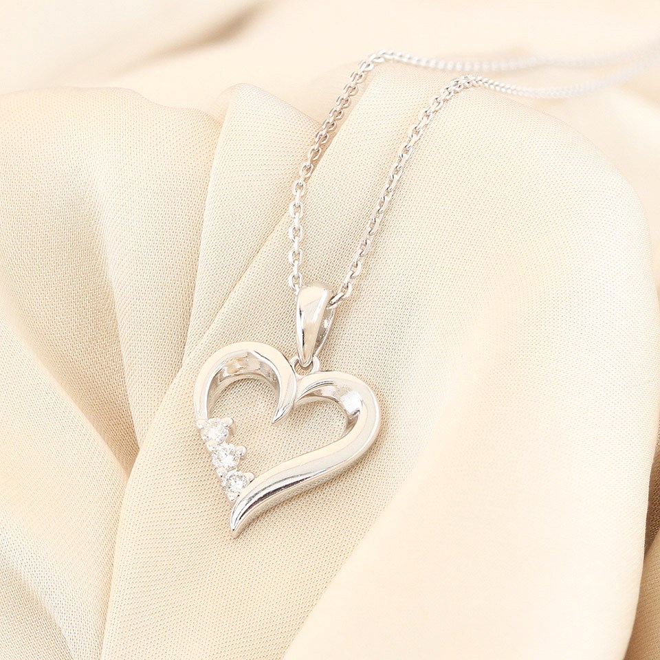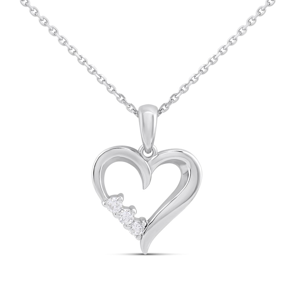 Classic love, modern shine. This 14mm wide sterling silver open heart pendant is delicately set with three brilliant lab-grown diamonds totalling 1/10ct, offering sweet and meaningful sparkle for every day.