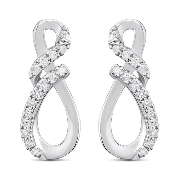 Get that perfect everyday sparkle with these 15mm sterling silver earrings with a sleek, intertwined loop silhouette, meticulously set with bright lab-grown diamonds for maximum fire and style.