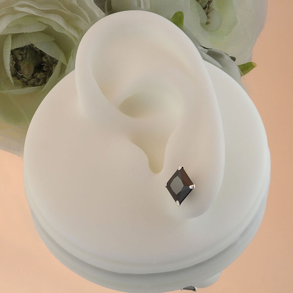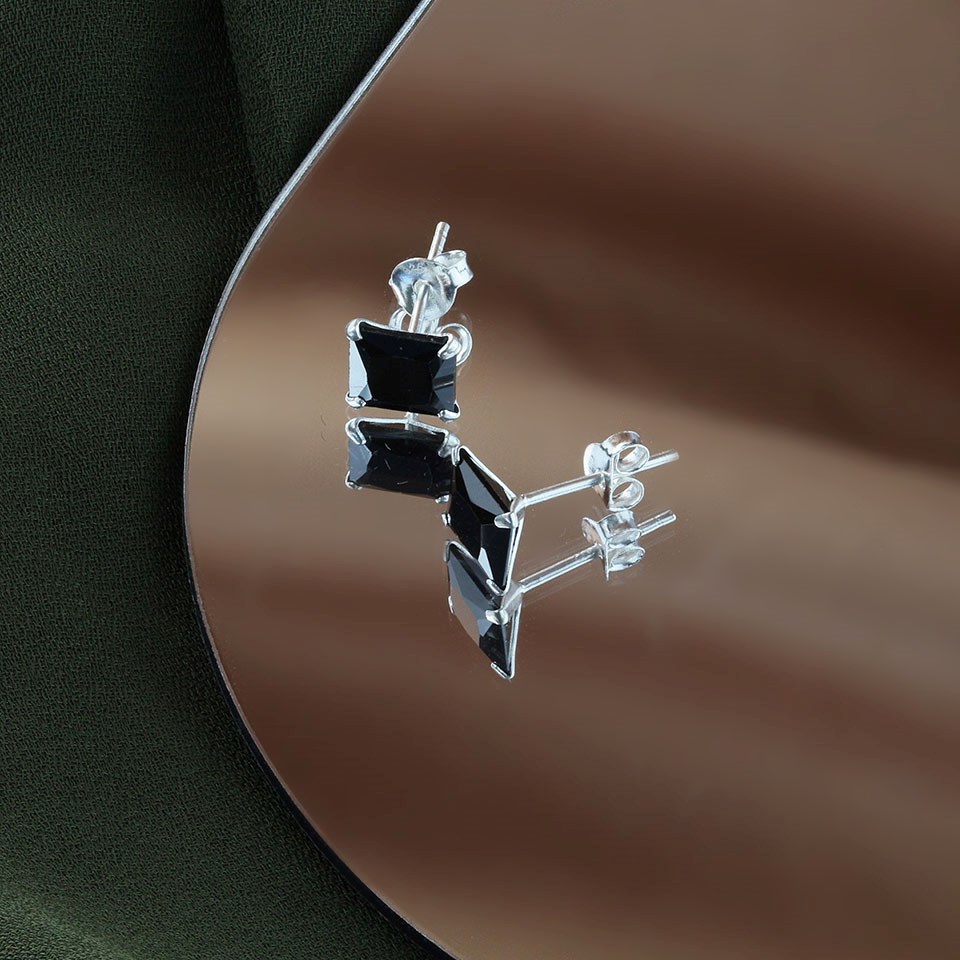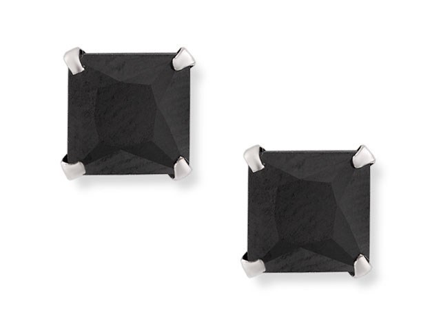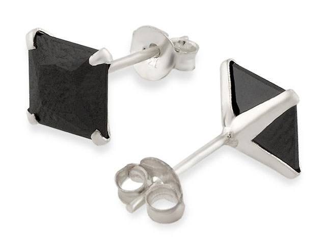 Silver 7mm Black Cubic Zirconia Square Stud Earrings - F0384