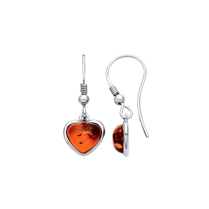 Silver Amber Heart Hook Wire Drop Earrings - F0714