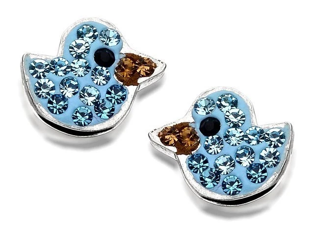 Silver Aqua Crystal Duck Stud Earrings - 7mm - F0475