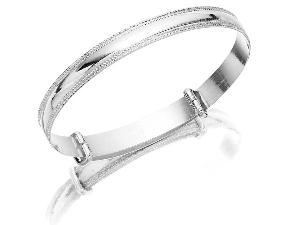 Silver Beaded Edge Expanding Children's Bangle - F26001