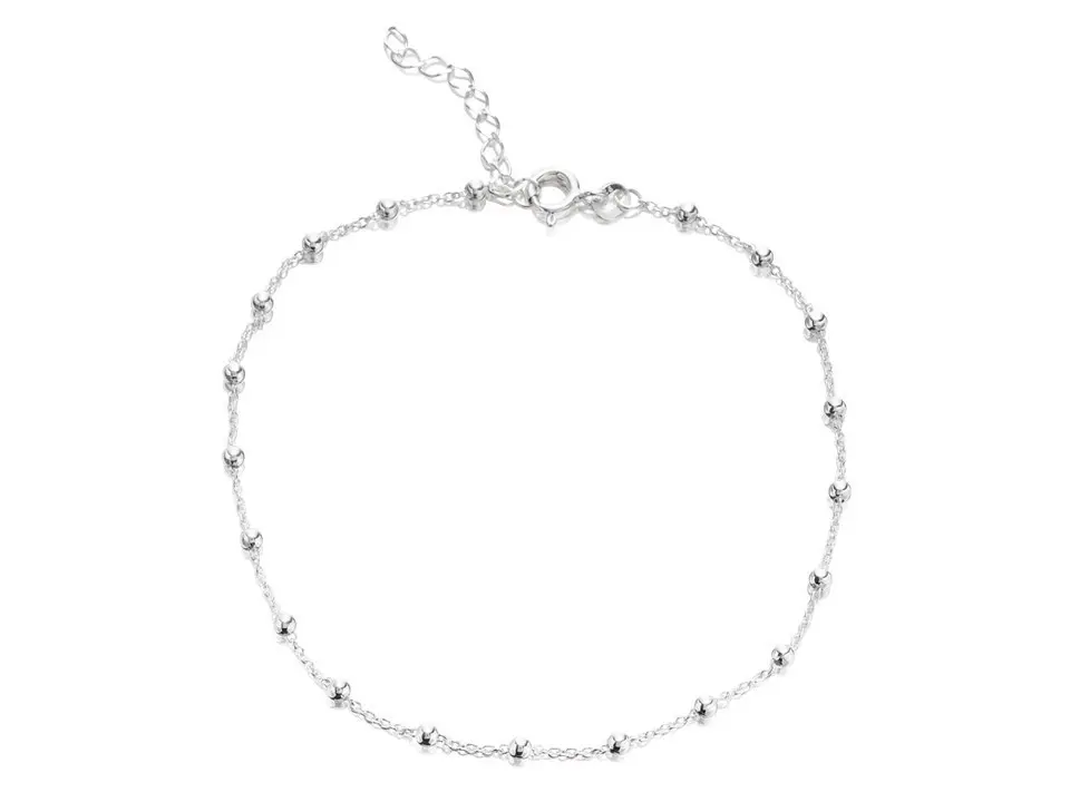 Silver Beaded Trace Chain Anklet - 9.75in - F2002