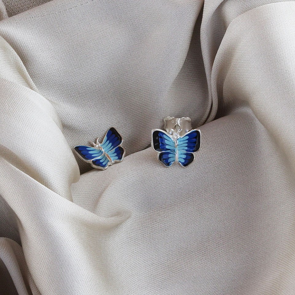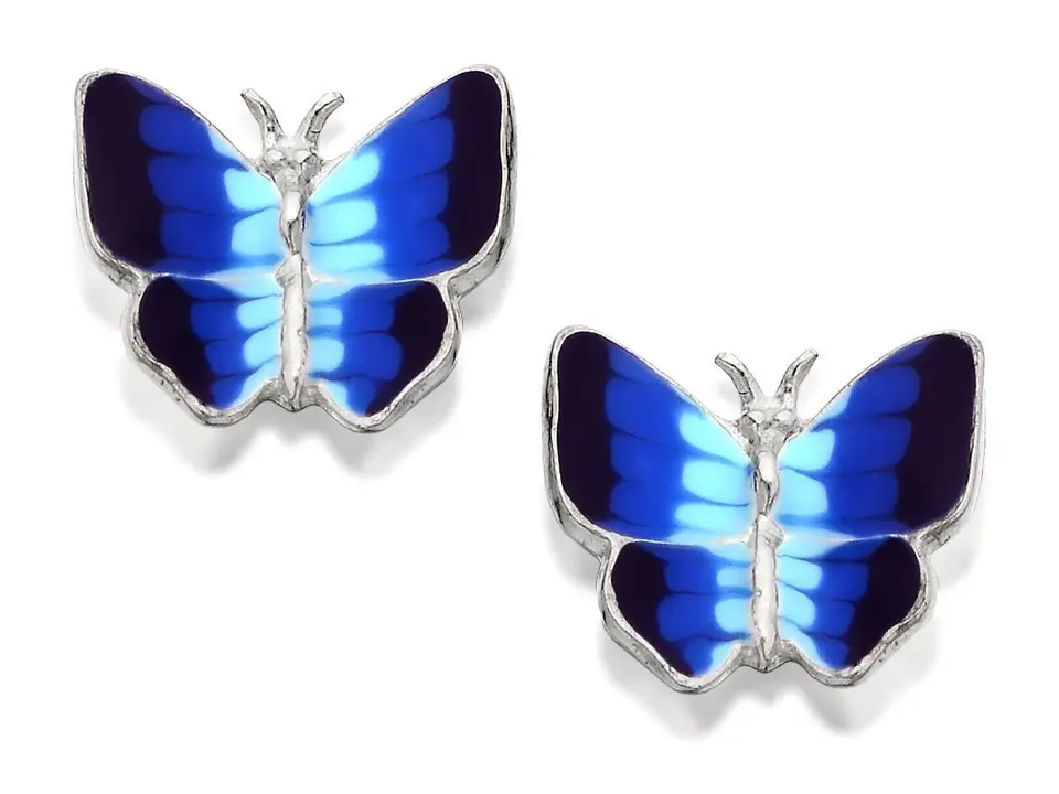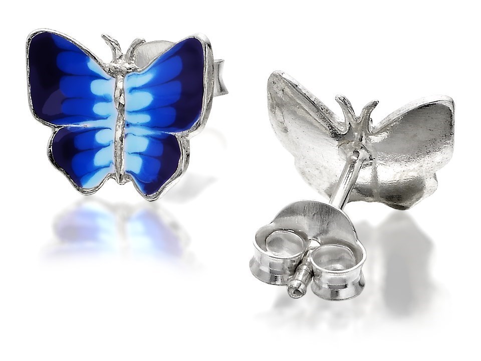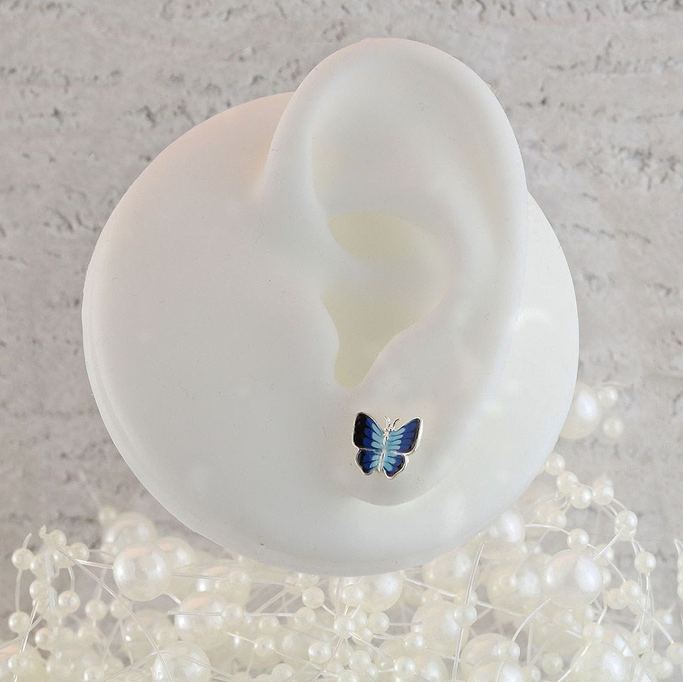 Silver Blue Butterfly Stud Earrings - 9mm - F0399