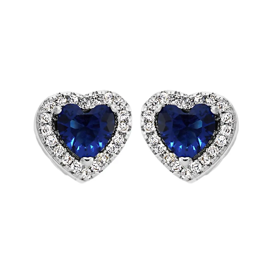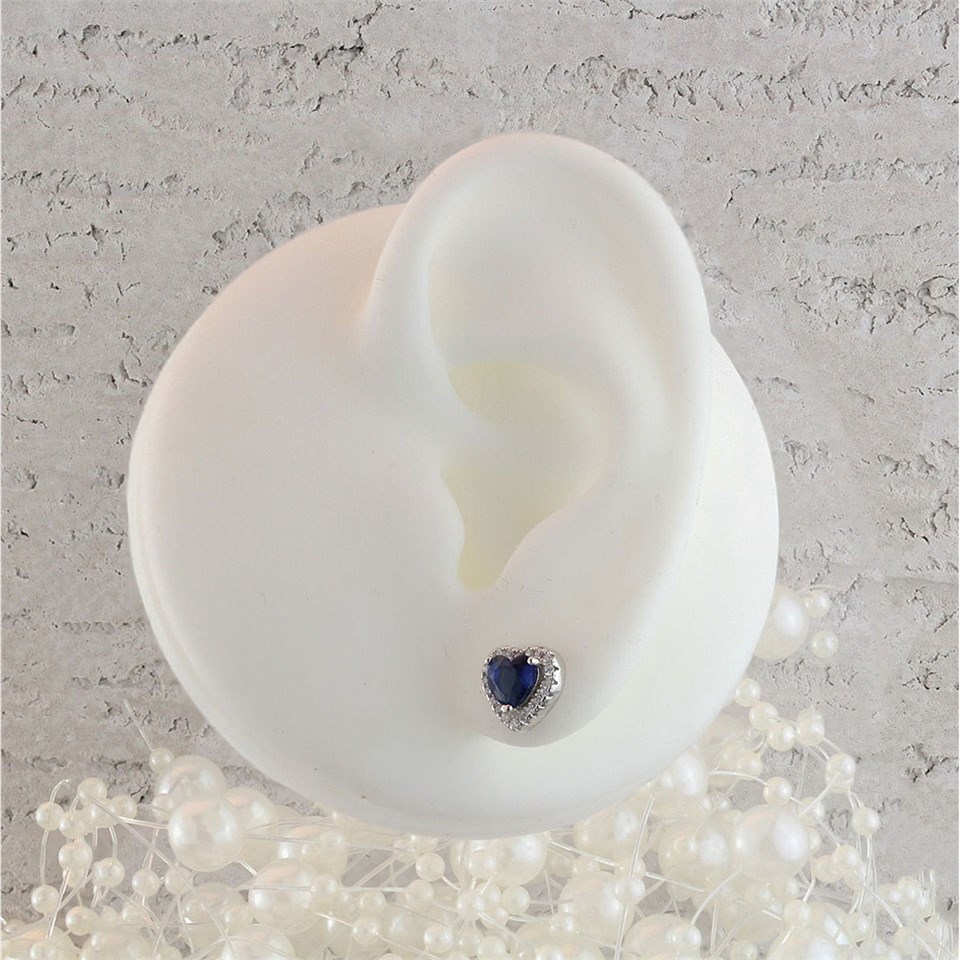 Silver Blue Cubic Zirconia Heart Halo Stud Earrings - 9mm - F04042