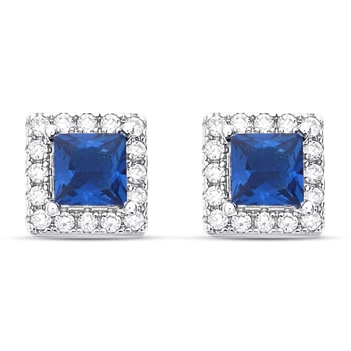 Silver Blue Cubic Zirconia Square Cluster Stud Earrings - 6mm - F04126