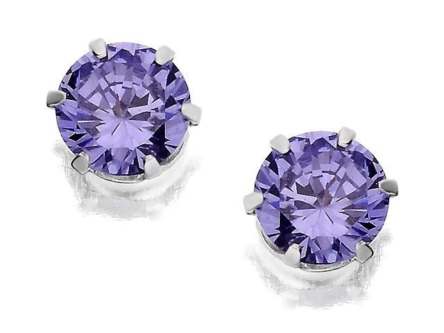 Silver Blue Cubic Zirconia Stud Earrings - 5mm - F0427