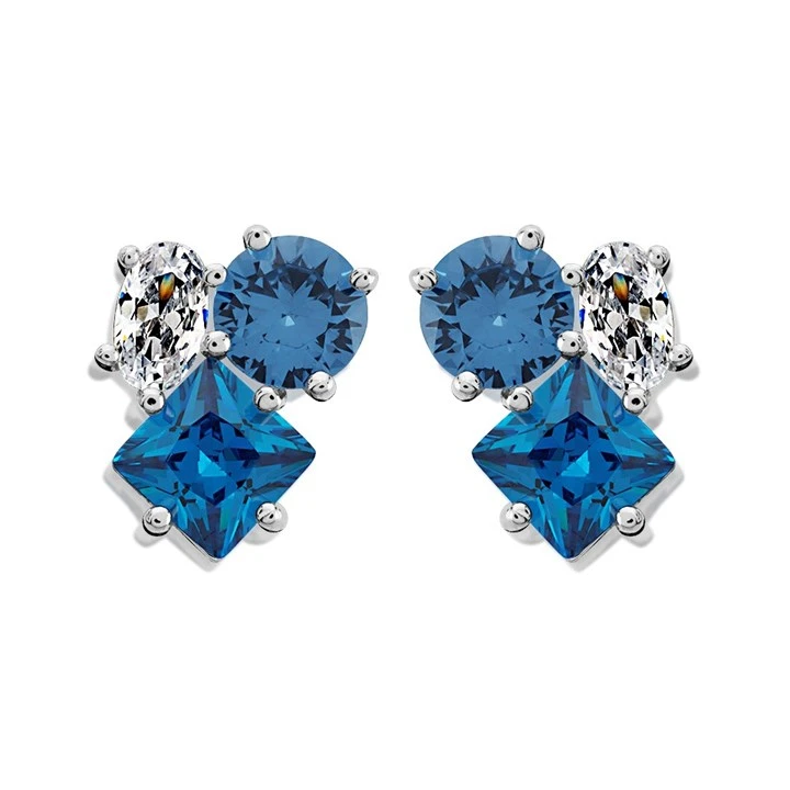 Silver Blue Cubic Zirconia Stud Earrings - F04159
