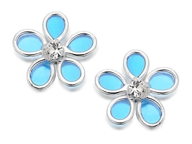 Silver Blue Resin And Crystal Flower Stud Earrings - 8mm - F0464
