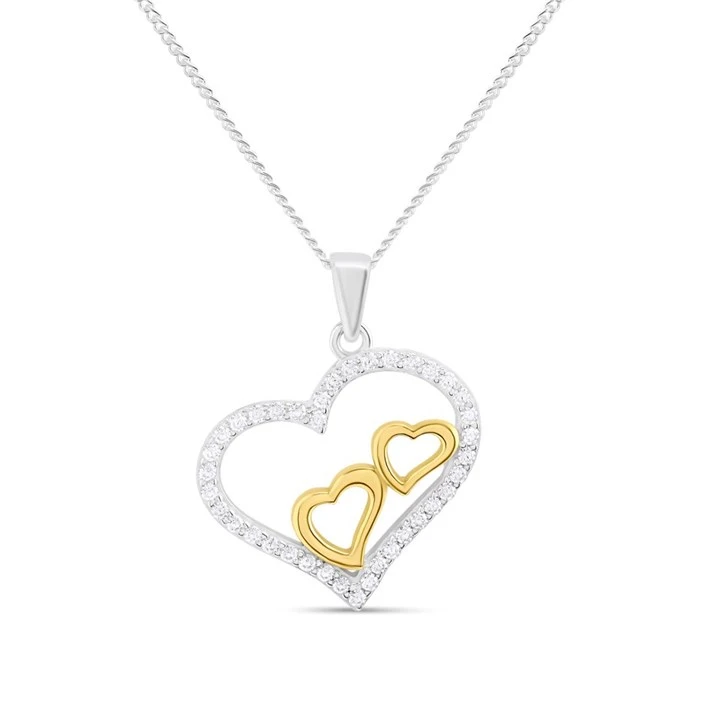 Silver C.Z. And Gold Tone Heart Necklace - F33046