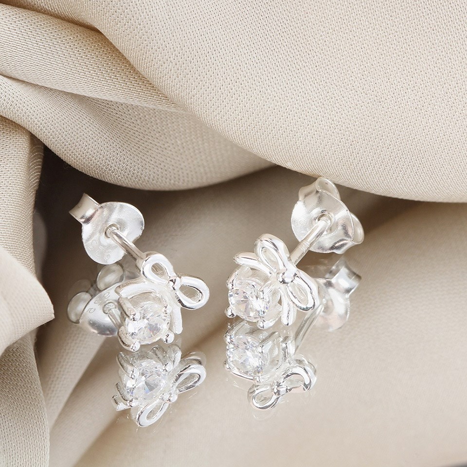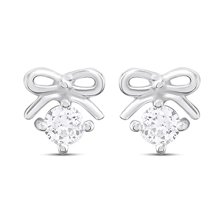 Silver CZ Bow Stud Earrings - F04215