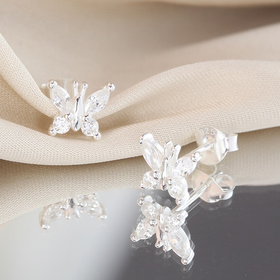 Silver CZ Butterfly Stud Earrings - F04217