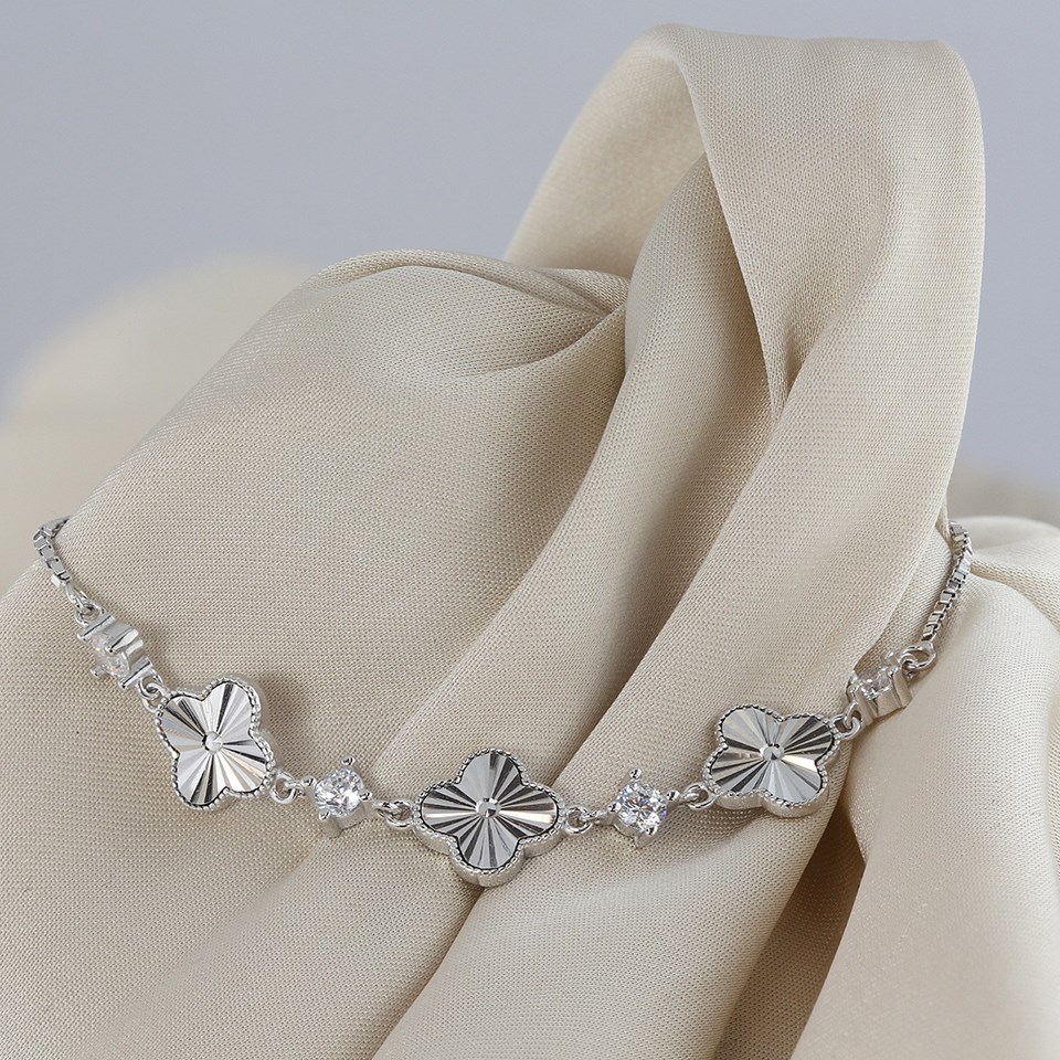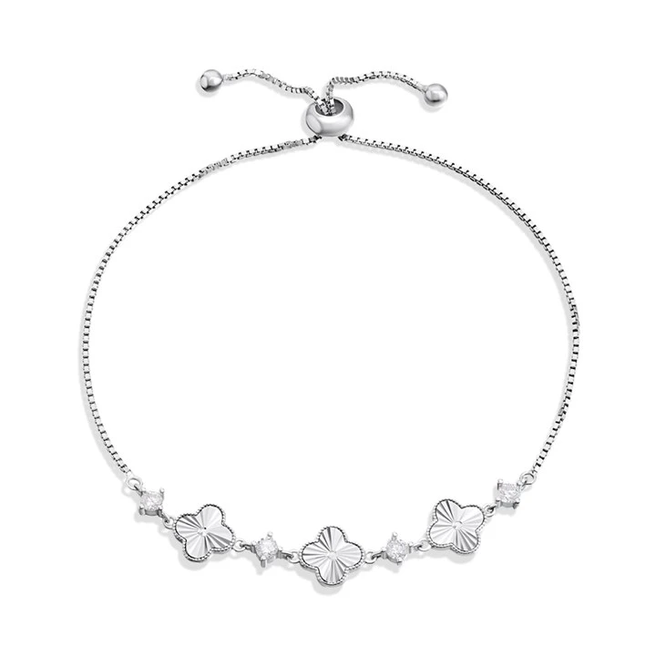 Silver CZ Diamond Cut Clover Adjustable Bracelet - F14183