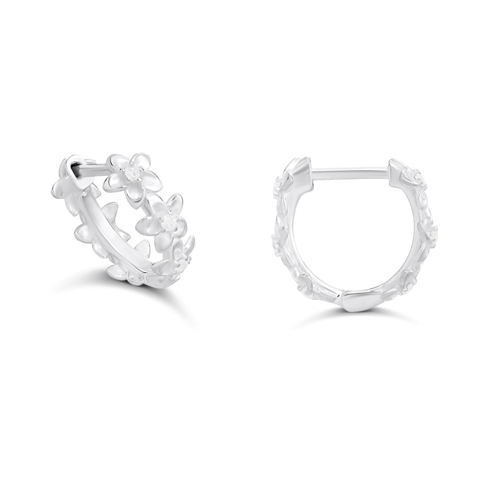 Silver CZ Flower Hoop Earrings - F13174