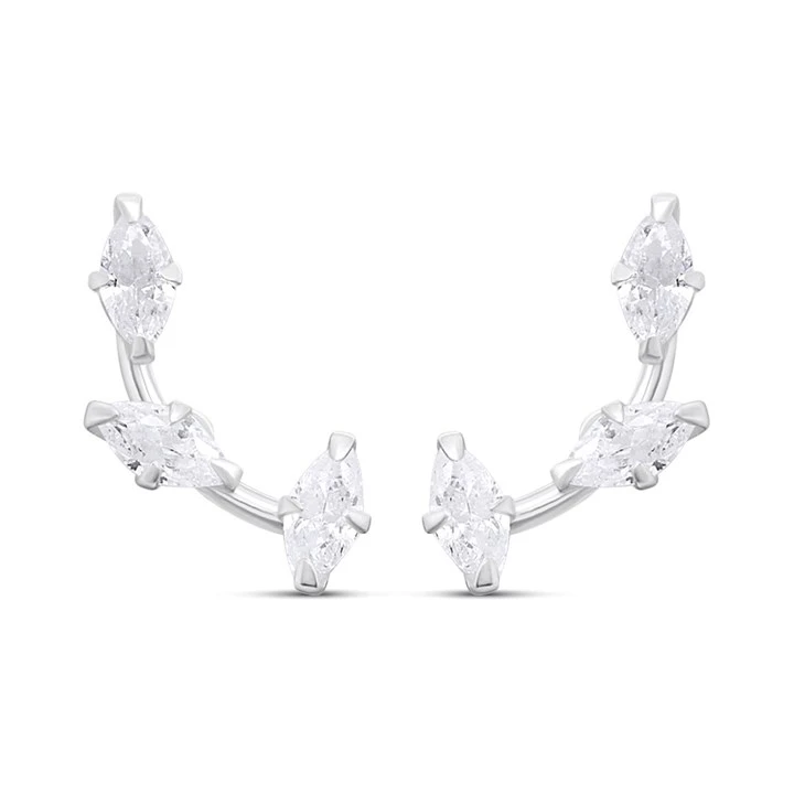 Silver CZ Marquise Stud Climber Earrings - F04216