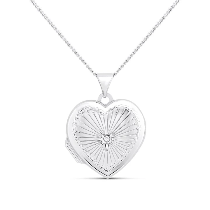 Silver CZ Starburst Design Heart Locket - F4365