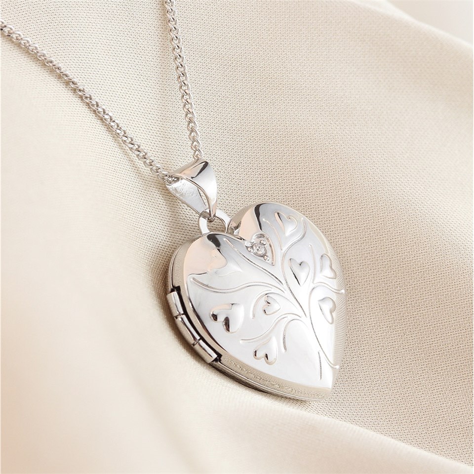 Silver CZ Tree Of Life Heart Locket - F4367