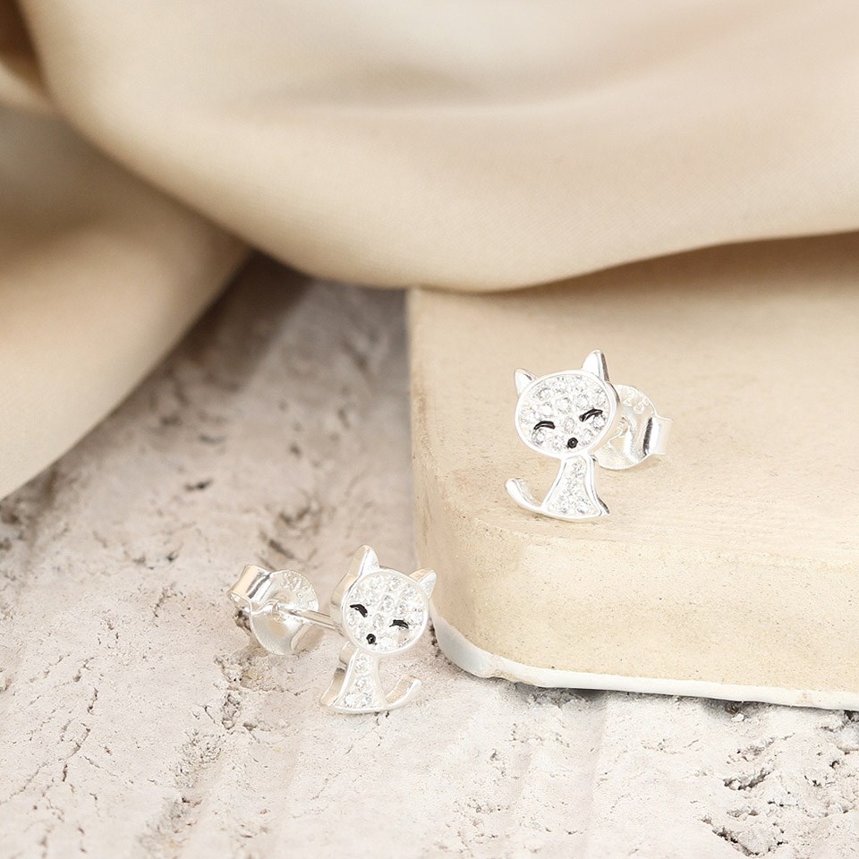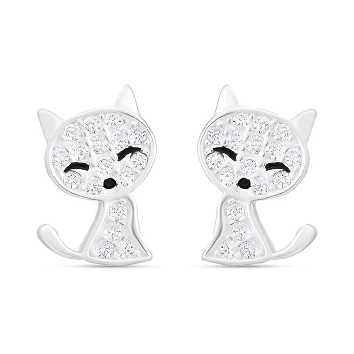 Silver Cat Cubic Zirconia Stud Earrings - F04205