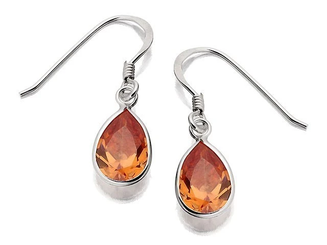 Silver Champagne Cubic Zirconia Hook Wire Earrings - F0745