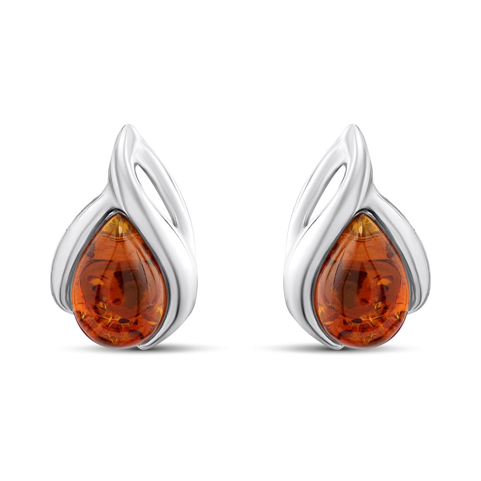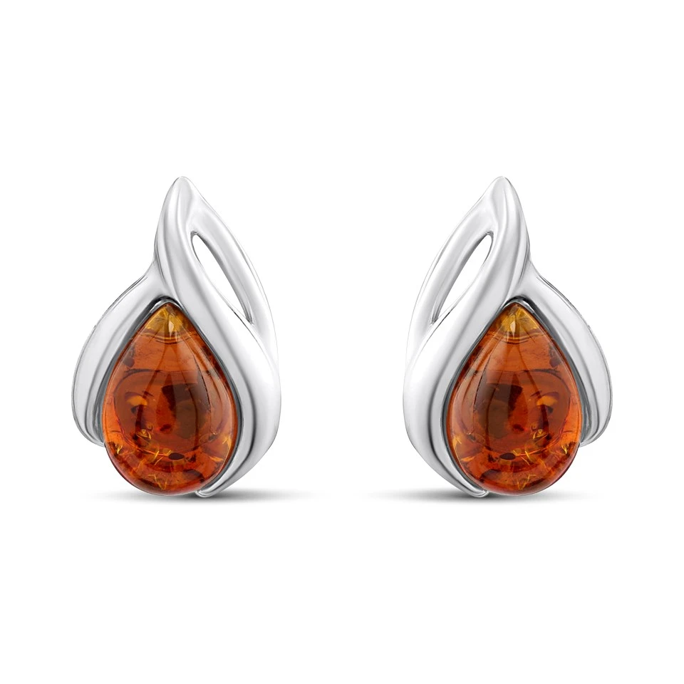 Silver Cognac Amber Teardrop Stud Earrings - F04227