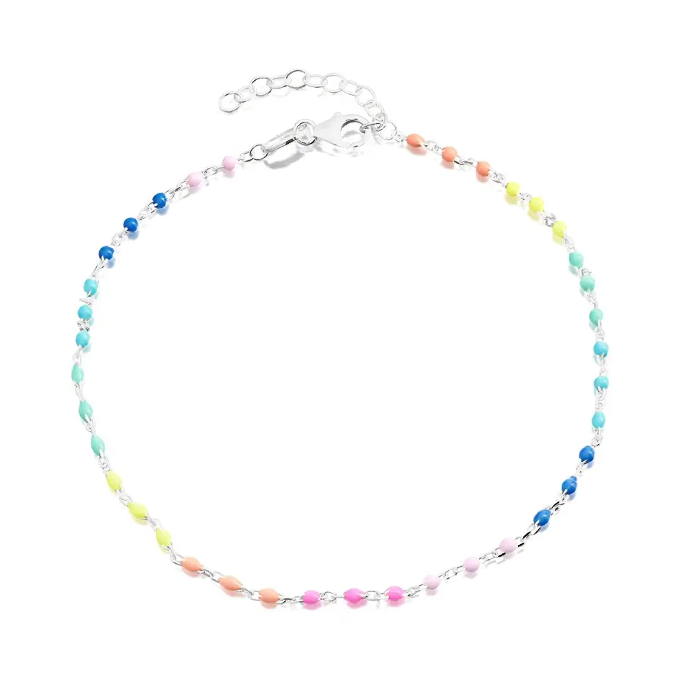 Silver Coloured Bead Anklet - 9.5in - F20003