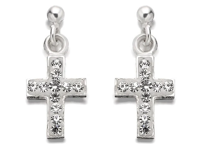 Silver Crystal Cross Drop Earrings - 15mm drop - F1151