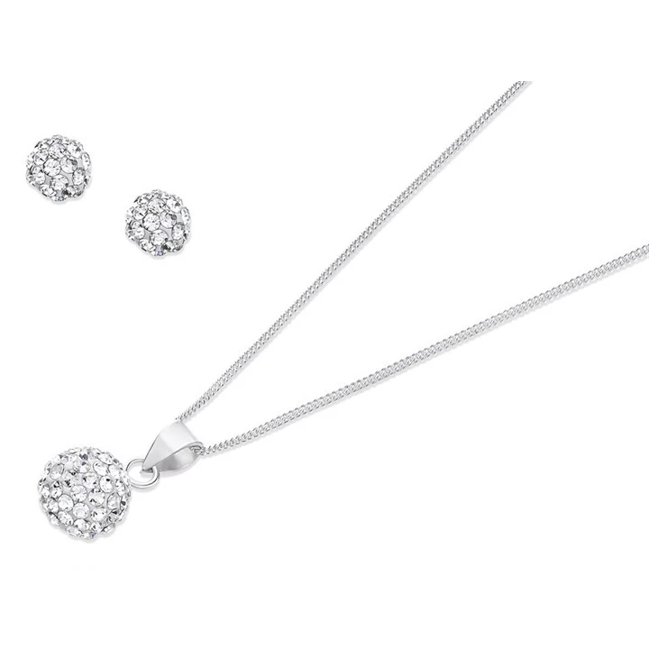 Silver Crystal Glitter Ball Necklace And Earring Gift Set - F3186