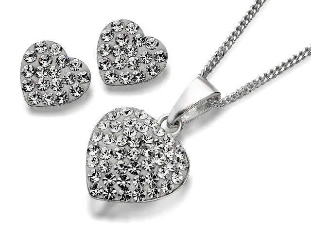 Silver Crystal Heart Necklace And Earring Gift Set - F3184