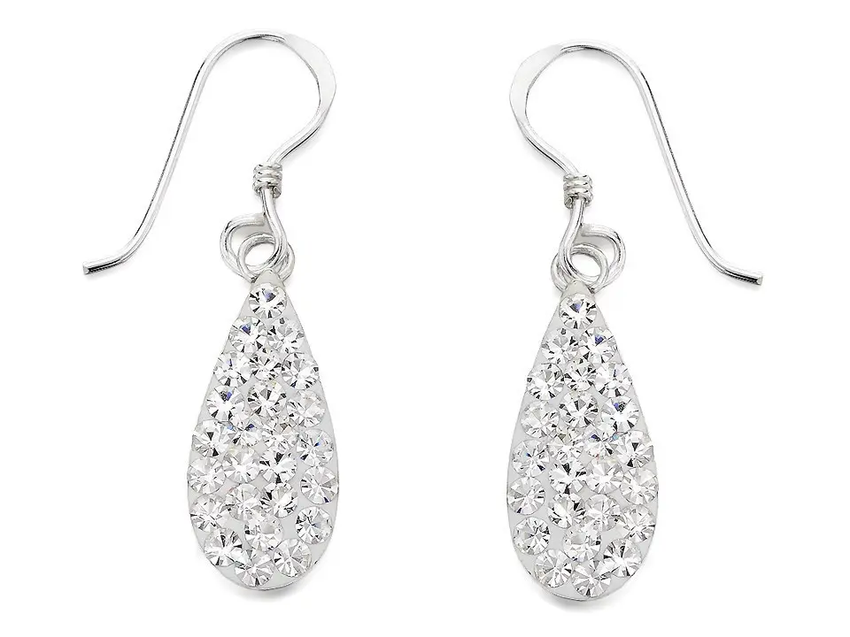 Silver Crystal Teardrop Hook Wire Earrings - 24mm drop - F0838