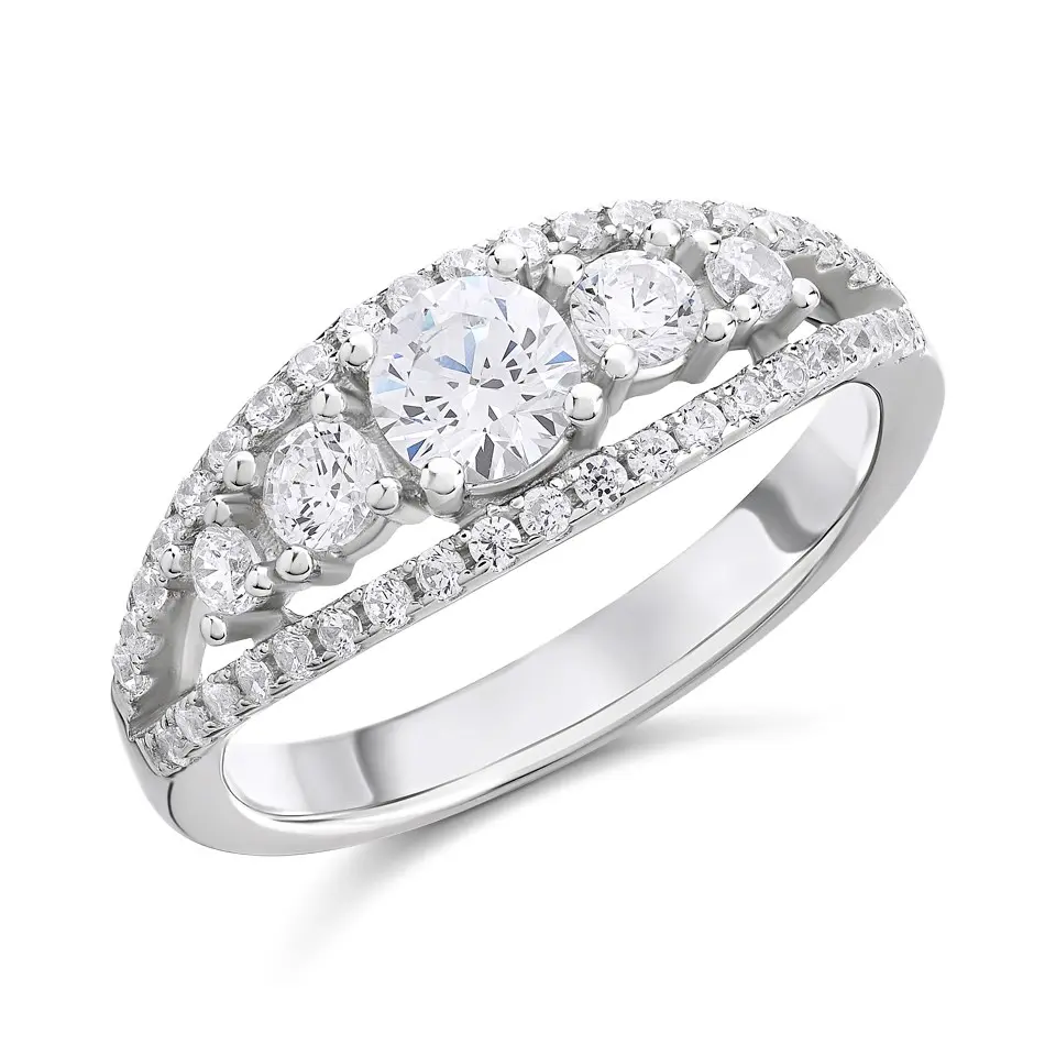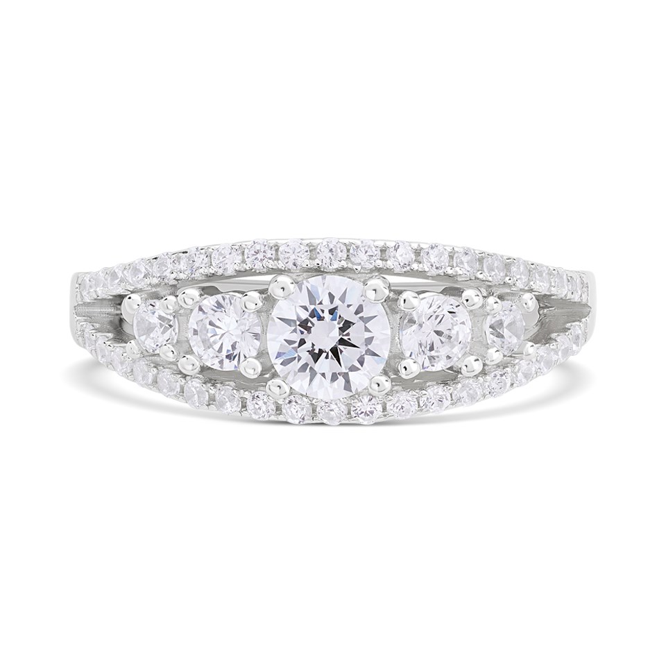 Silver Cubic Zirconia Band Ring - F6089