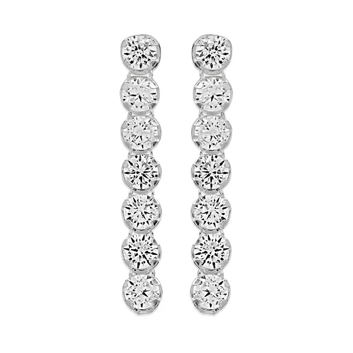 Silver Cubic Zirconia Bar Drop Earrings - 16mm drop - F11021