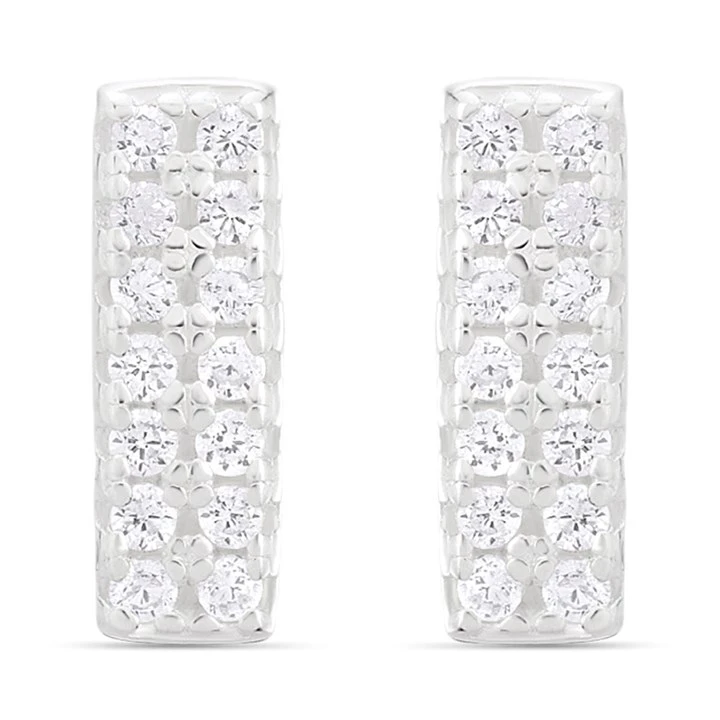 Silver Cubic Zirconia Bar Stud Earrings - 8mm - F04207