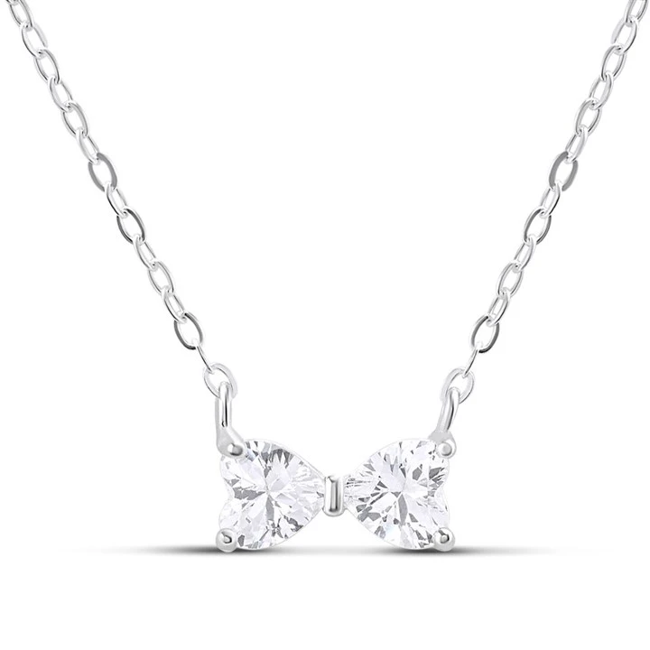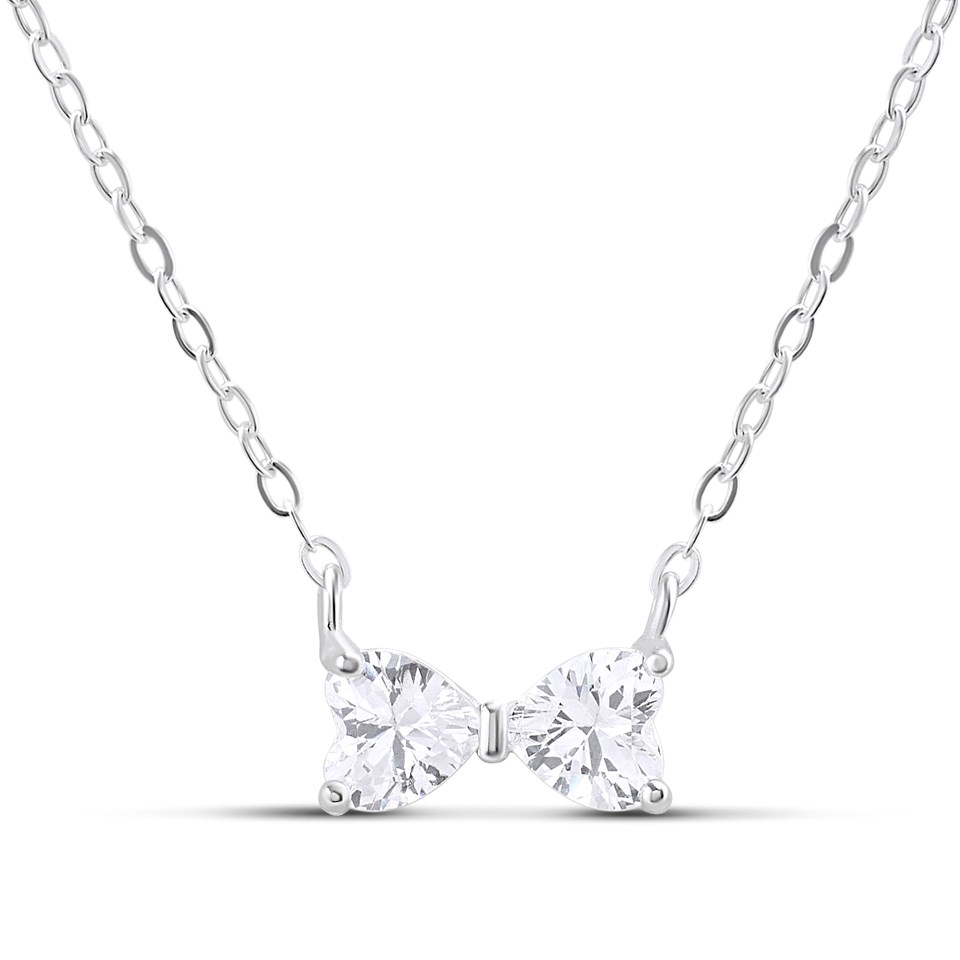 Silver Cubic Zirconia Bow Necklet - F35164