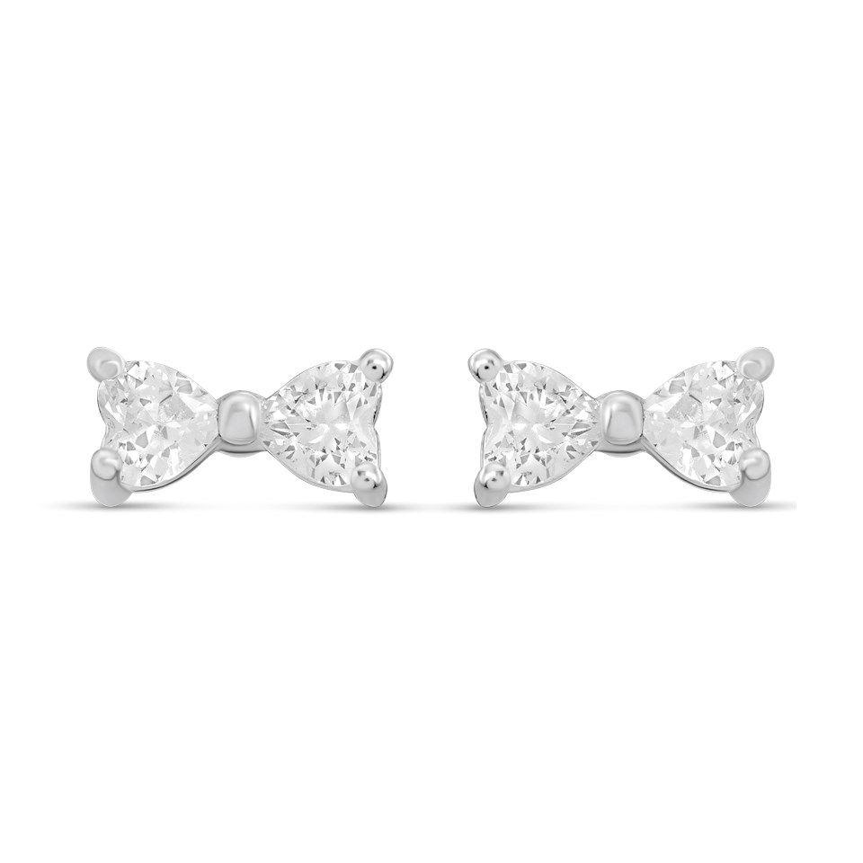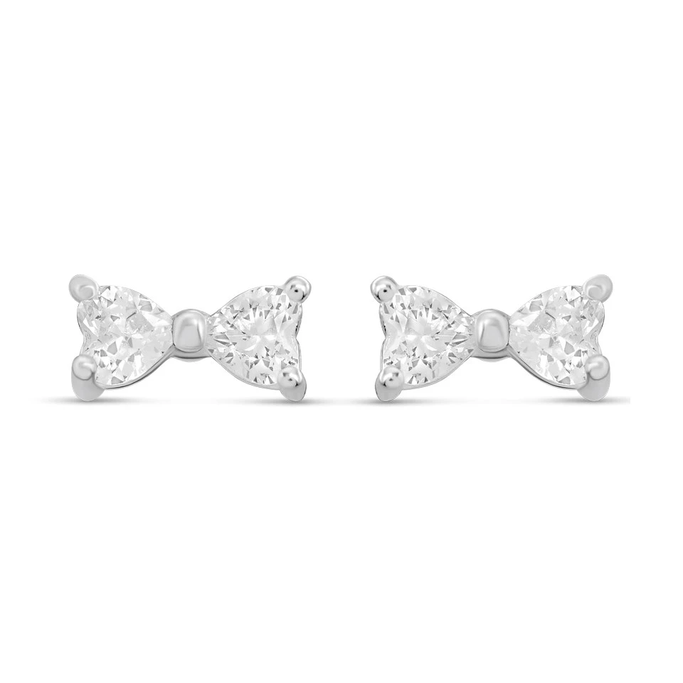 Silver Cubic Zirconia Bow Stud Earrings - F04220