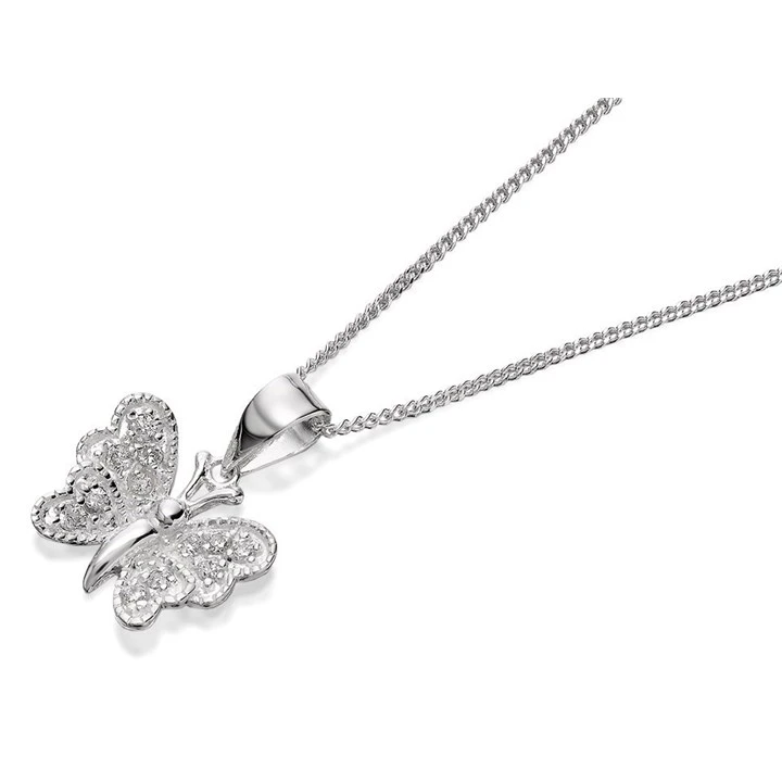 Silver Cubic Zirconia Butterfly Pendant And Chain - F3467
