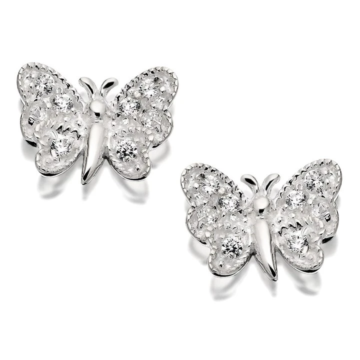 Silver Cubic Zirconia Butterfly Stud Earrings - F0406