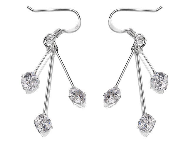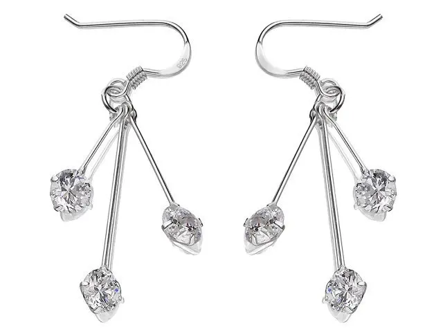 Silver Cubic Zirconia Cascade Hook Wire Earrings - F0761
