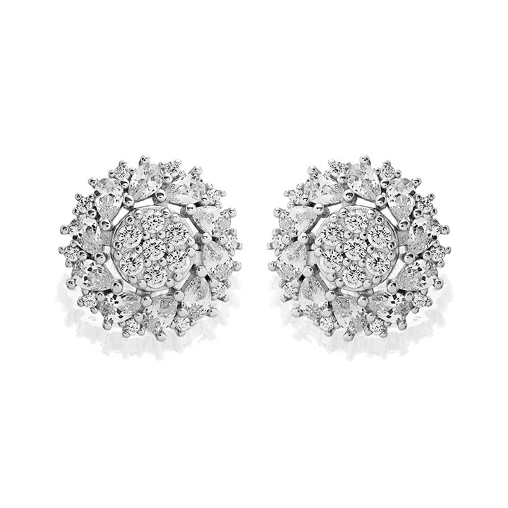 Silver Cubic Zirconia Cluster Stud Earrings - 11mm - F04149