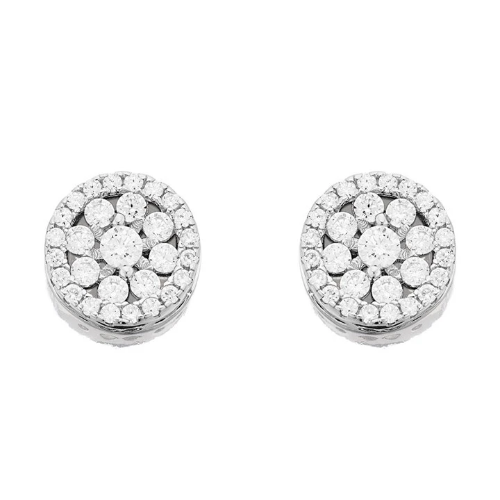 Silver Cubic Zirconia Cluster Stud Earrings - 8mm - F04134